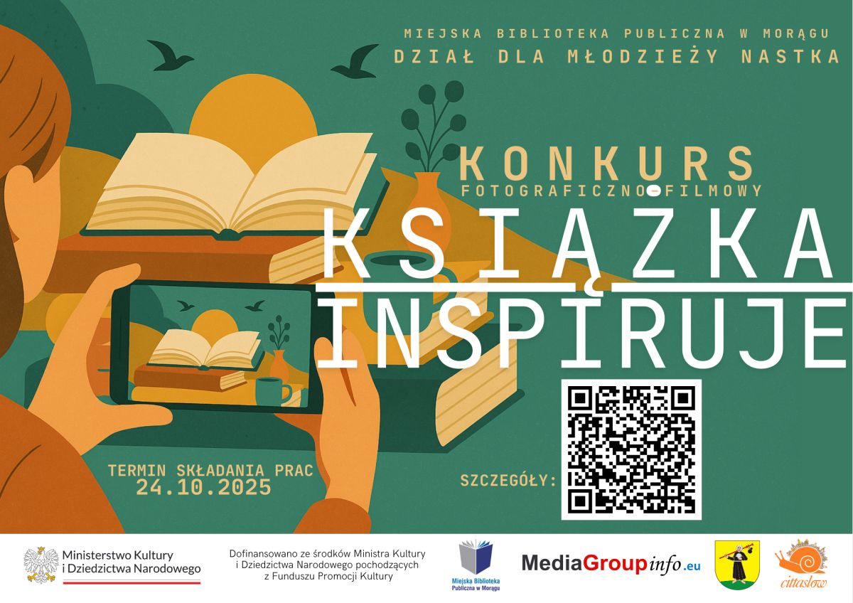 Miejska Biblioteka Publiczna w Morągu – Dział dla Młodzieży NASTKA – zaprasza do udziału w wyjątkowym konkursie fotograficzno-filmowym „Książka inspiruje”.