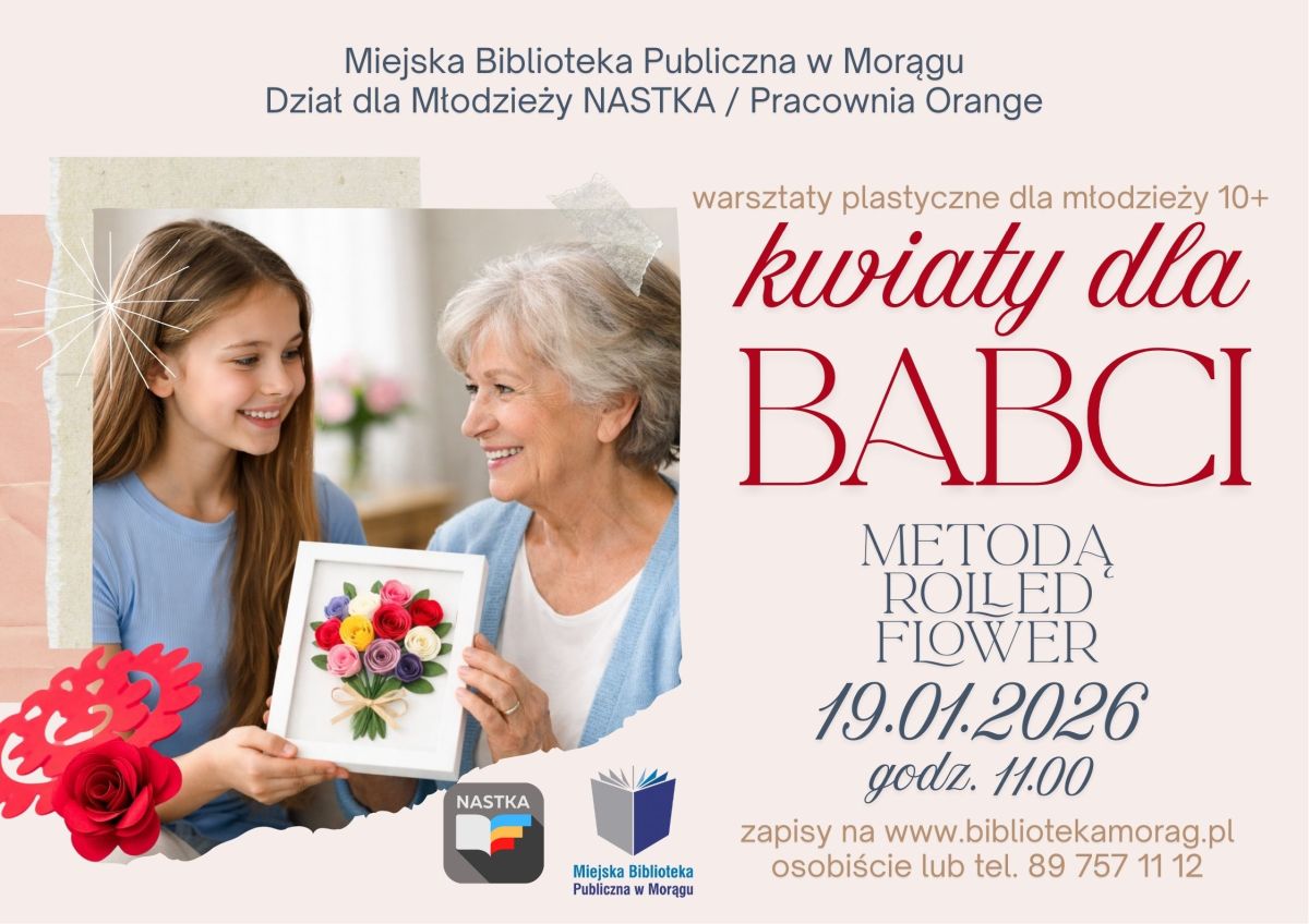Więcej na: https://www.bibliotekamorag.pl/2026/01/warsztaty-kwiaty-dla-babci-metoda-rolled-flower/