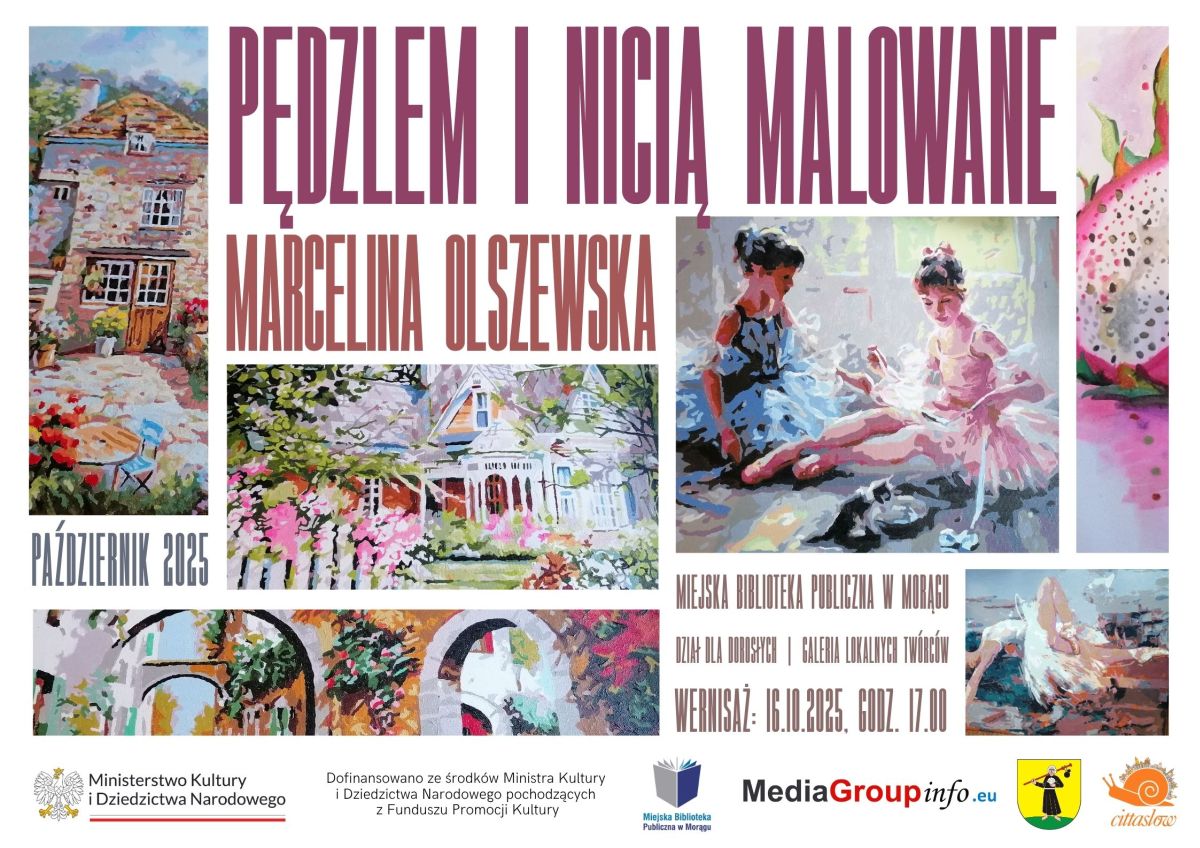 W październiku w Galerii Lokalnych Twórców znajdującej się w Dziale dla Dorosłych Miejskiej Biblioteki Publicznej w Morągu można podziwiać wyjątkową wystawę zatytułowaną „Pędzlem i nicią malowane”, której autorką jest pani Marcelina Olszewska – artystka o niezwykle wrażliwej duszy i wszechstronnych talentach.